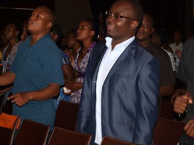 Wageni Waalikwa wakiwa hawaamini Makamuzi ya Gospel Music.Mwenye Suti Ya Blue amekunja nne ni yule Mkali wa Gospel Music wa South Africa aliyepata tuzo mwaka huu Benjamin Dube.leo Dube Makamuzi kwenda Mbele.